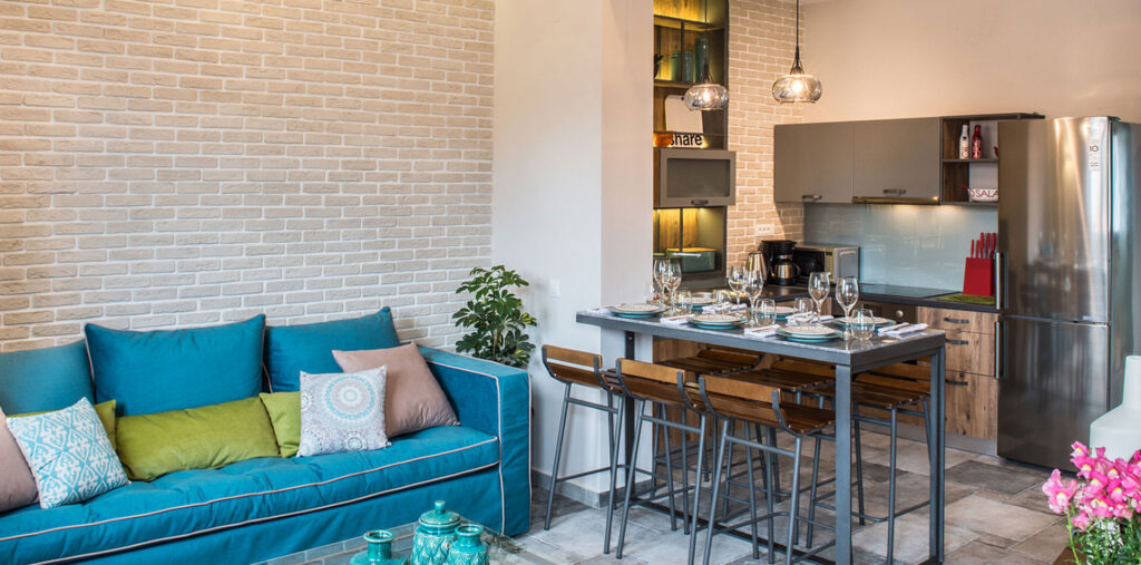 Casa Maritima is a residence in the heart of the Venetian port of Chania, just steps from the sea, on Kondylaki Street. This old Venetian house was destroyed during the second world war and was later rebuilt in two phases. The house has been completely renovated in 2016 offering its guests modern design in an area that was the old Jewish district of Chania. The house consists of 3 bedrooms with ensuite bathrooms in 2 levels, a fully equipped kitchen and a living room. Its exterior includes a terrace with side sea view to the Venetian harbor and a dining area along with a roof terrace where someone will find sun loungers and a lounge to relax and enjoy a coffee or a drink.